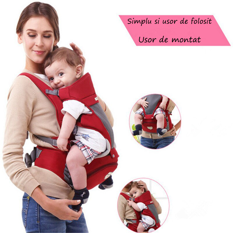 Marsupiul permite bebelușului să stea într-o poziție naturală, ergonomică, distribuind greutatea între șolduri și umeri, pentru a reduce presiunea asupra spatelui purtătorului. Atunci când nu mai este necesar marsupiul complet, acesta poate fi detasat, folosind doar scăunelul pentru suport!