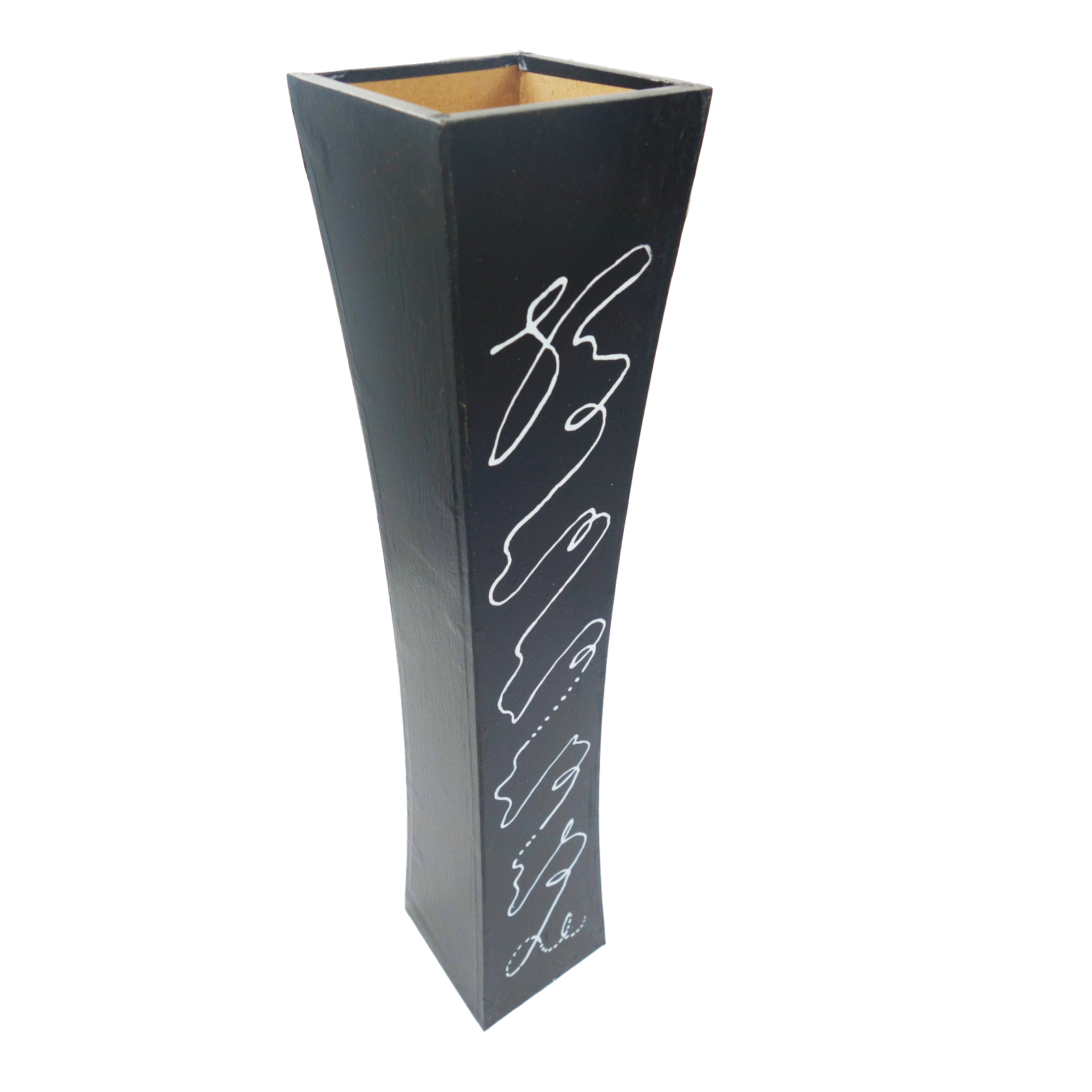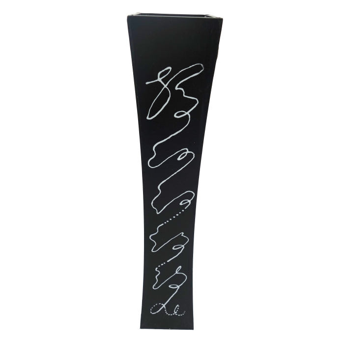 Această vază decorativă din MDF are un finisaj negru și un imprimeu artistic în tonuri de alb, cu motive vegetale și linii curbe. Cu o formă elegantă, ușor evazată, și o înălțime de 58 cm, este ideală pentru decoruri moderne, clasice sau orientale. Contrastul dintre alb și modelul închis oferă un efect vizual rafinat și echilibrat.