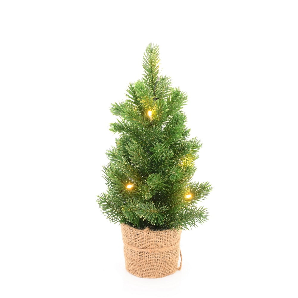 Ramurile bradului sunt de un verde intens și luxuriant. Bradul arată foarte natural. Bradul este așezat într-un ghiveci solid, învelit în material de iută naturală. Ghiveciul găzduiește și baterii AAA.