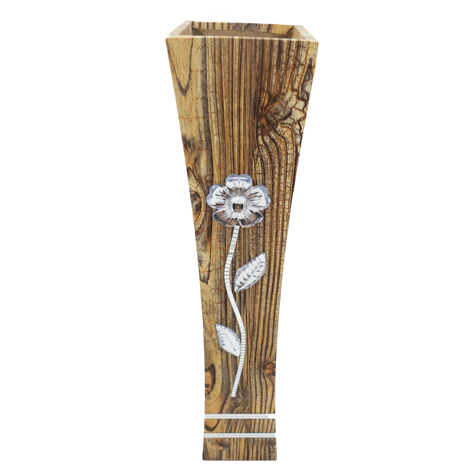 Vază decorativă cu floare aplicată,  MDF, 58 cm, lemn