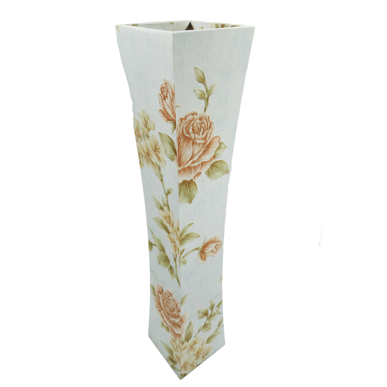 Această vază decorativă din MDF, cu finisaj crem și imprimeu floral pastelat, aduce un aer romantic și vintage în orice spațiu. Cu o formă elegantă, ușor evazată, și o înălțime de 58 cm, este ideală pentru decoruri feminine, shabby chic sau clasice. Motivele florale în nuanțe de piersică, bej și verde pastel oferă un contrast delicat și plăcut.