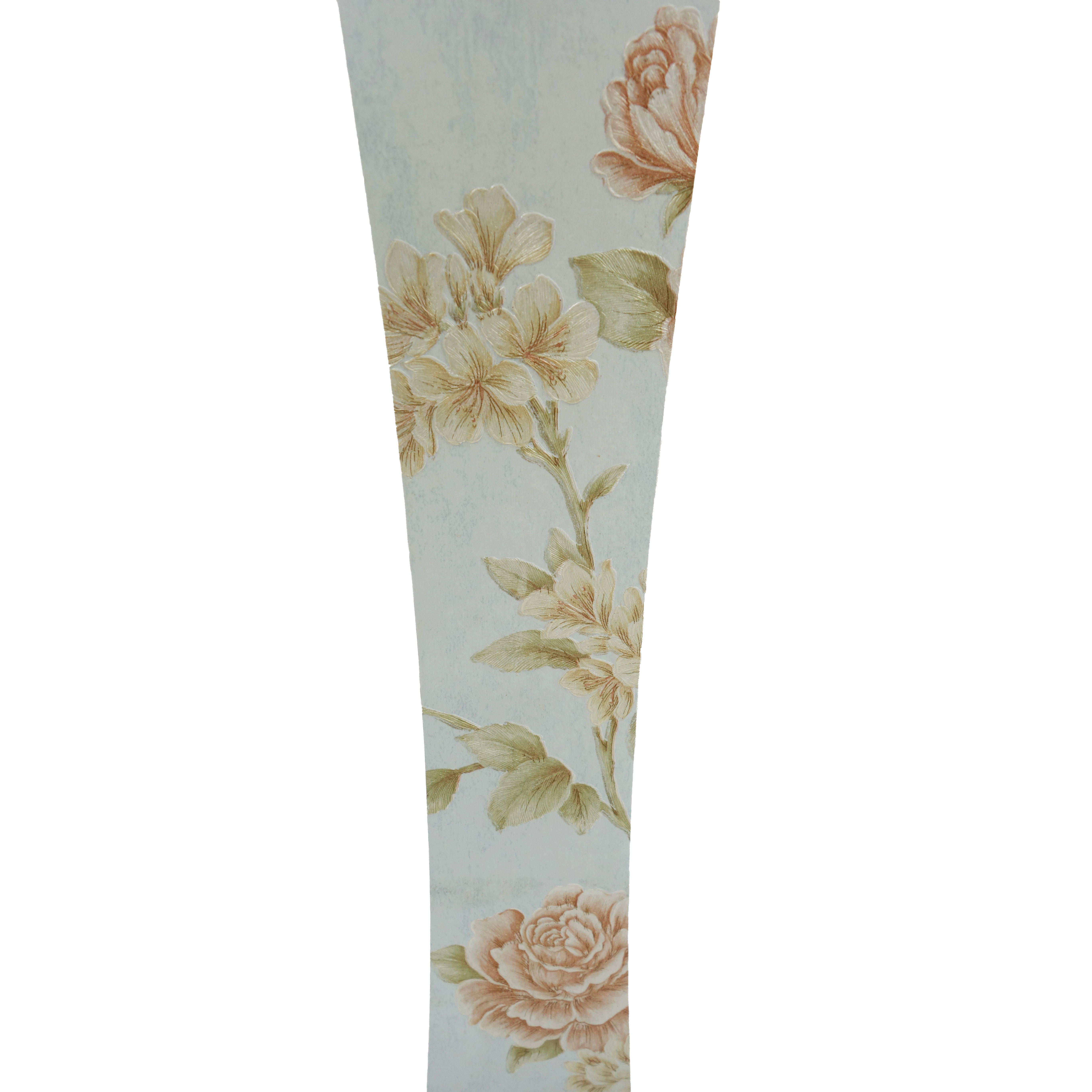 Această vază decorativă din MDF, cu finisaj crem și imprimeu floral pastelat, aduce un aer romantic și vintage în orice spațiu. Cu o formă elegantă, ușor evazată, și o înălțime de 58 cm, este ideală pentru decoruri feminine, shabby chic sau clasice. Motivele florale în nuanțe de piersică, bej și verde pastel oferă un contrast delicat și plăcut.
